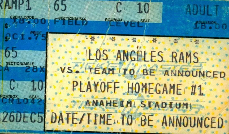 IMAGINE THAT, we got division playoffs tickets for $18 dollars ! The great Eric Dickerson versus the legendary Tony Dorsett ! Rams had Bartkowski at QB ,